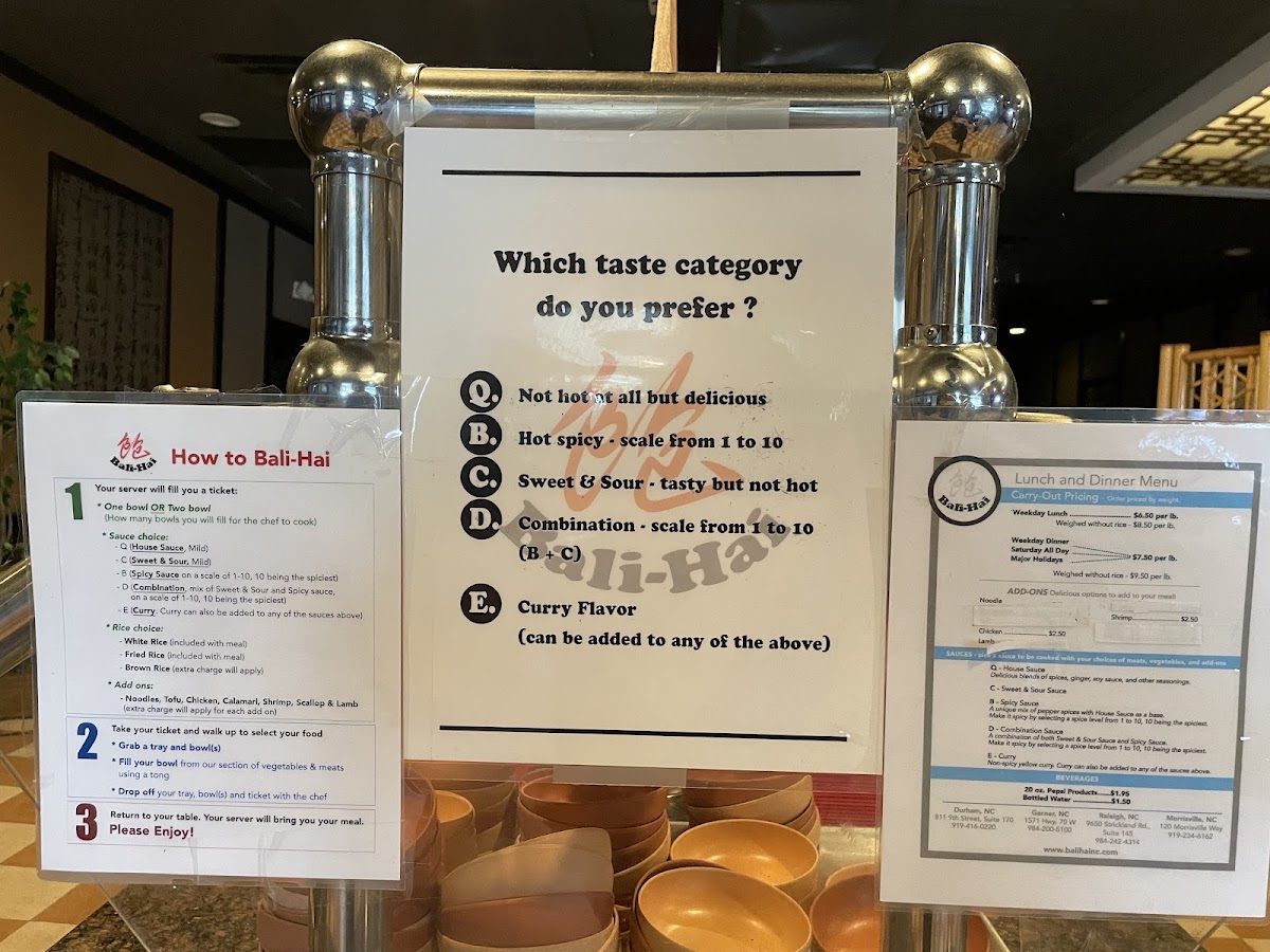 Welcome to Bali Hai Mongolian Barbecue, where culinary creativity meets quality. Located at 1571 U.S. 70, Raleigh, NC, this vibrant eatery is beloved for its unique, customizable dining experience. Guests can fill their bowls with a selection of fresh vegetables and high-quality meats, all while choosing from an array of delectable sauces to suit their taste.